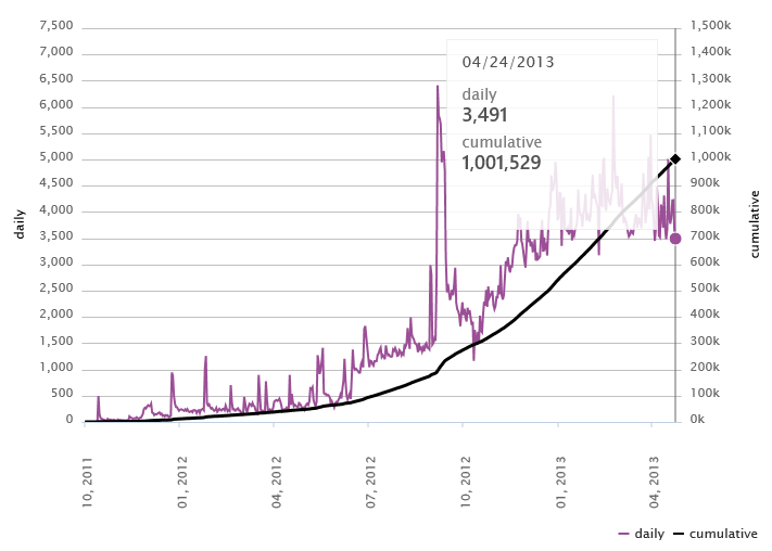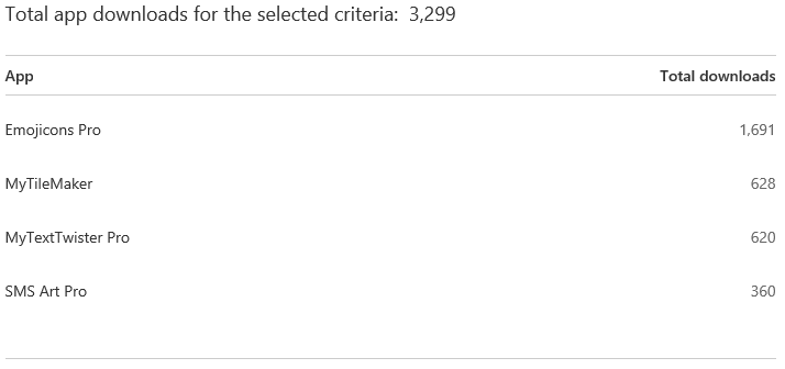 Below you can find download stats. Don’t forget to check out my apps in Windows Phone store and download them please for the next million. ![]()